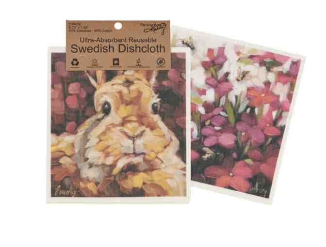 This set of 2 Swedish Dishcloths from our Easter & Spring Collection features calming scenes of a bunny on one dishcloth and spring flowers on the other dishcloth. Designs are replicated from original artwork hand painted in a unique textured style.