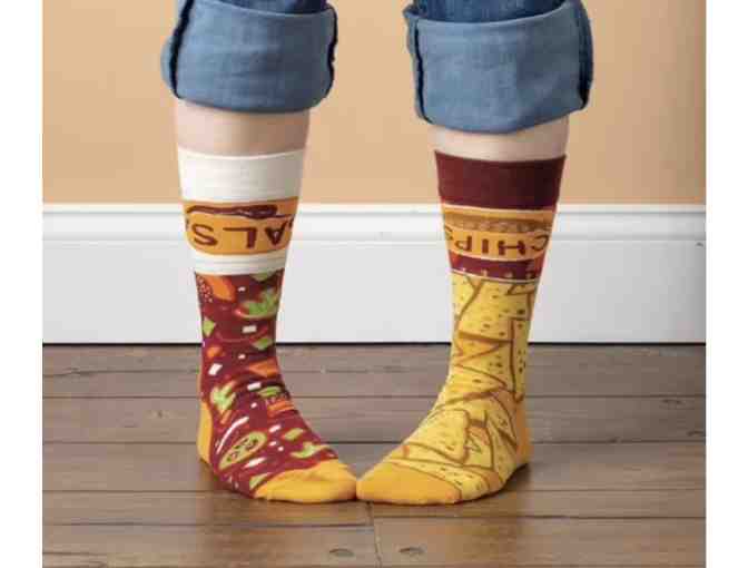 These mismatched colorful socks from our LOL Made You Smile Collection feature woven Chips and Salsa designs, one on each sock.
