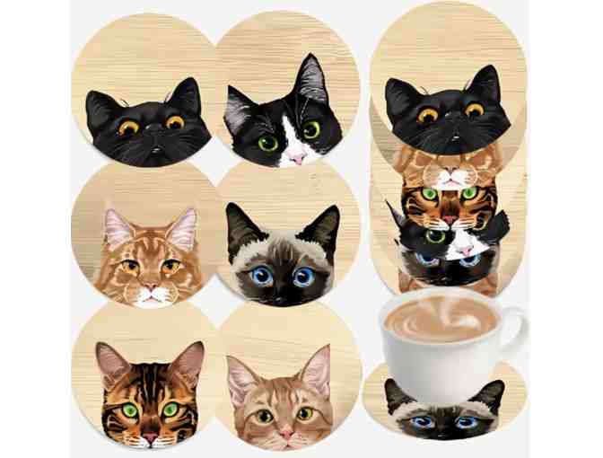 Set of 6 Cute Wooden Coasters Featuring Cats