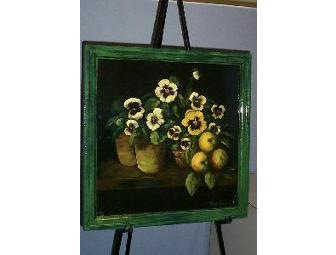 This lovely 2' by 2' work from Martha Bannon Gallery and Showroom in Essex, MA, was handpainted by Martha Bannon.