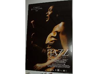 Legendary jazz singer Billie Holliday is depicted in this poster signed by filmaker Ken Burns for his 10 part PBS series "JAZZ", airing in 2001. This promotional poster of Billie Holliday is 26" x 39", contains some text, credits, airdate of the special and is signed by Ken Burns.
