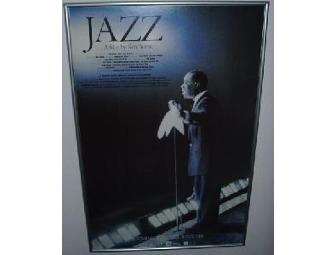 Jazz great Louis Armstrong is depicted in this poster signed by filmaker Ken Burns from his PBS documentary series, "Jazz". This 26" x 39" poster of the late, great "Satchmo" is a black and white photo of Armstrong which was designed to publicize the original PBS broadcast in 2001. It contains text, credits, airdate and Ken Burns' signature.