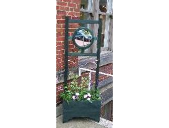 This attractive planter/trellis is made of cedar and stained with a dark green outdoor stain. The planter box itself measures 22.5" long x 9" wide x 15" high.