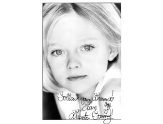 This 8x10 black and white photo was autographed by the incredible child actress, Dakota Fanning. It is inscribed "Follow Your Dreams! Love, Dakota Fanning Age 11"