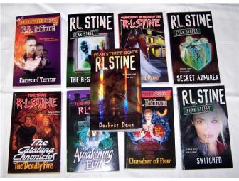 This package of R.L. Stine paperback books is from the Fear Street series. "Darkest Dawn" is autographed by the author. The package includes 9 books from this series.