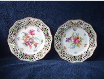 2 Antique Dresden Bavarian plates. Floral design. 81/2" diameter. 1" basket weave border. In perfect condition.