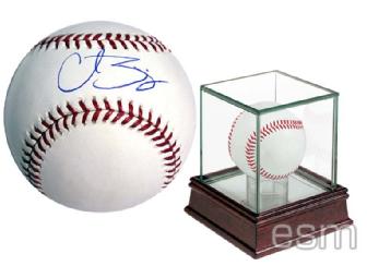 This official Major League Baseball is hand signed by Curt Schilling. Included with this item is a glass case with a cherry wood base. Item includes a Certificate of Authenticity.