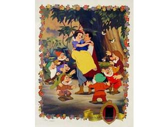 'This is a limited edition litho from the animation Disney classic Snow White, as well as, an actual piece of animation cel all professionally matted and framed in a black wood frame.'