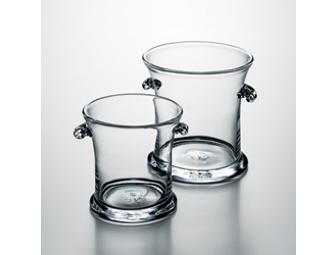 Large Norwich Ice Bucket is an original design in hand blown glass. It measures H 8 1/2 x W 7 1/2. This beautiful glass ice bucket makes a wonderful wedding or anniversary gift.