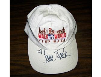 Putty color CROP WALK cap personally autographed by Jane Fonda. Autograph is on the brim. Cap is one size fits all.