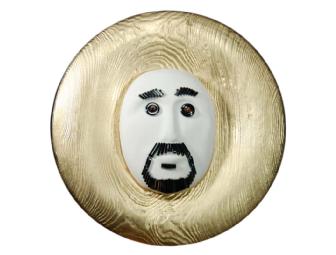 George Dorry draws his art influence from Asian artistic traditions and specializes in unique wooden Ikebana and bud vases, necklaces centered on Chinese carved stone and jade pendants, and Suiseki which is Japanese stone art. Prior to opening Noble Elegance Studio, Dr. Dorry practiced clinical psychology. His mask, "Ego in Full Hubris," is made of a Douglas fir wooden platter.