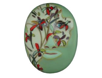 "Iris Woman" is symbolic of faith, hope and wisdom, says artist Carlene Frances. She "chose the color green because it is the most restful to the human eye and suggests peace and endurance." Carlene is a nationally known artist who currently shows her work at Denver’s Enso gallery on Santa Fe Drive and Square Deal Gallery on Colorado Boulevard. Her primary medium is oil painting on canvas in large format. Some of her beautiful, colorful work can be seen on her official site, www.carlenefrances.com .
