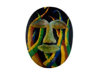 Michael is principal architect of Michael Knorr & Associates, Inc., with offices in Denver and Las Vegas. Michael Knorr & Associates specialize in residential and light commercial architecture. The mask, Calypso Mask, looks through multi-colored leaves of grass that echo tropical themes and puts forth an invitation to the dance. Calypso songs are improvisations characterized by wrenched syllabic stress and syncopated rhythms.