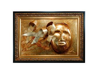 Annie Brenman-West is a five-year breast cancer survivor with strong feelings about people being able to decide to control their end-of-life destiny. Her mask is a tribute to the staff and volunteers of The Denver Hospice. She uses gold leaf to represent The Denver Hospice's standard which is golden. She created it in the memory of "two amazing people in my life," Nina Kelly and Kenneth Morise who died under hospice care. Nina was a very active member of the Denver community in the arts. Kenneth was Annie's co-worker and very good friend and Nina's hairdresser.