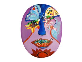 Essie Goldberg Perlmutter has always been interested in color, imagery and design. She holds a certification in Interior Design and a B.A. in Art. Her paintings are presently in the permanent collection of the Jewish Community Center, Hebrew Educational Alliance, B.M.H.-B.J. Synagogue, Shalom Park, Kempe Center and the Campus for Jewish Education. Essie says that her work is basically figurative, that she gets her inspiration from happenings she comes upon in every day life. Essie Perlmutter has created masks for The Mask Project each year since its inception.