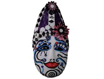 Denver artist Kathy Berenstein has exhibited in several galleries in Colorado and beyond and has participated in the Loveland Invitational. She has served as a docent at the Denver Art Museum. Her mask, "Cabaret," is made of paper mache' and acrylic paint.