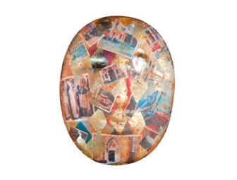 Amy Dixon has a BA in studio art from Newcomb College of Tulane University and did post-graduate work at the Studio Arts Center International in Florence, Italy. Her gallery representation includes: Vail Fine Art, Breckenridge Fine Art, Santa Fe Fine Art, Huff Harrington Fine Art in Atlanta, Jules Place in Boston, Studio Gallery in Palm Beach, Fla., Ann Connelly Fine Art in Baton Rouge, La., and City Art Gallery in Greenville, N.C. Her mask, “Painted Postcards from Italy,” was inspired by the land of timeless beauty. "Everything begins and ends in romance, dreams and fantasy..... and of course, food and wine!" she says. Collage paintings reflect snips of a recent trip to Venice and Tuscany.