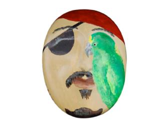 Marjorie is a widow who loves parrots and birds including her Amazon parrot, Raven, who has become a constant companion. Raven is often on her shoulder and her children tell her she looks like a pirate. Her mask, "Raven & Johnny" is named for her pet and Johnny Depp.