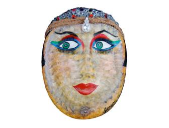Janet Fikany is an instructor for the John Casablancas Modeling Agency with makeup credits including Sundance Film submissions, Warner Bros. Studios and other theatrical makeup. Her mask, ?The Bali Babe,? was inspired by the beautiful Balinese dancers. Because she?s a makeup artist, she used MAC makeup pigments blended into the paint.