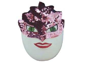 Janet Guthrie is best known as the first woman to earn a starting spot in the Indianapolis 500 which she did in 1977. She also is the first woman to earn a starting spot in NASCAR's Daytona 500 and was named "Top Rookie" in 1977. Her biography, written in 2005, Janet Guthrie: A Life at Full Throttle , was acclaimed by Sports Illustrated as "an uplifting work that is one of best books ever written about racing." Her mask, titled "The Masked Mask," is pure whimsy, especially the cat eyes.