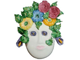 This Denver ceramic artist is a member of the Colorado Jewish Arts Guild and the Aurora Potters Guild. She currently exhibits at Gallery Curve in the Santa Fe Art District in Denver and is studying sculpture at the Art Students League in Denver. Her mask in a porcelain ceramic flower and leaf motif is titled "Wallflower."