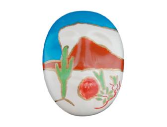 Denver minister Judith Kilbourne worked on her mask with her 9-year-old grandson Blade Kilbourne. It depicts a modern desert scene in honor of her daughter who had breast cancer and loves the desert. This is her second time participating in The Mask Project.