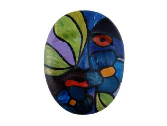 Cindy Licht is a new artist learning different media, including oil, acrylic and pastels. Her mask in stained glass depicts a woman's face.