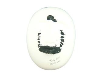Mimi the elephant and conservation ambassador for the Denver Zoo is one of the longest-living residents of the Denver Zoo. The Asian elephant who came to the Denver Zoo in 1961 is 49 years old. When not leaving her impressions on the art world, she enjoys munching on her favorite snack – watermelon. Her mask, "Trunk Kiss," is not only a kiss but a hand print as well. Elephants use their trunks just as we humans use our hands. The single dot on the forehead of the mask is the top of Mimi's nose.