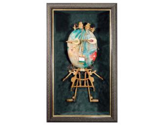 Ellyn Rucker has a long career as a jazz pianist - performing and recording in Denver, at jazz festivals throughout the U.S. and Europe, and touring China. The mother of Kurt and Kristen, Ellyn is also a teacher and has plans to tour and play on trains across the U.S. She has been written about in seven jazz books, including Madame Jazz, and appeared on NPR. Ellyn says jazz is a layering of notes and sounds so her mask is celebration of notes, sounds and working parts of a piano. Ellyn is at one with her piano and the two hearts on her sleeves stand for the heart and soul in her music. Call is Blossoms of Music as she uses guts, nuts, bolts, hammers, keys, wire and the strings from her brother Ross' bass, the man she calls her muse.