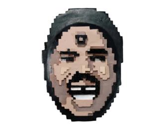 Mr. Pacman is an 8-bit super hero, rock star, and champion to the people of Denver and Japan. Mr. Pacman has been fighting evil in his trademark golden helmet and moon boots since 2001. The mask is a 3D, 8-bit rendition of the late, great Wesley Willis, self-proclaimed world's greatest rock star. The mask includes a copy of the Mr. Pacman CD "Turbotron" which contains a track introduced by Wesley Willis himself.