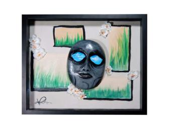 Tara Penales works for Walgreens SeniorMed Hospice Pharmacy. Her passion for art, life, and the little things were her inspirations for this mask, titled "Release." "Release" represents a moment of despair that many people experience at different stages in their lives. In times of strain and grief, we tend to forget the little things such as the flowers and grass that make the earth and world around us so beautiful. The Denver Hospice can open this window for patients and the family and friends around them. "Release" signifies treating the individual and not just the disease.