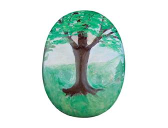 After taking early retirement from the software industry, D. Ann Schneider turned to pottery which she has done for 10 years. A recent design class renewed her interest in drawing and painting. She is a member of the Potters Guild and the Greater Castle Rock Art Guild and her art is carried by galleries in Maryland. When she viewed her mask upside down, the raised area suggested a tree which she believed was a fitting symbol for hospice. The tree's yearly cycle suggests our life cycles, she says. She chose to depict spring/summer because of the way hospice care can renew the spirit and bring hope to those at the end of their lives.