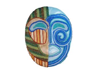 Colorado artist Tara Stoneburner's mask represents the Greek Classical Elements - Earth, Water, Air, Fire and Idea - that persisted through the Middle Ages and into the Renaisance, deeply influencing European thought and culture. A native of Central Lake, Mich., Tara moved to Colorado in 1994 to earn BFA degrees in photography and art education from Colorado State University. While teaching art and music for six years in Englewood, she attended the University of Denver, earning a Masters in Creative Writing. When not traveling or enjoying Colorado's outdoors, she teaches art in Cherry Creek at the elementary level and is a volunteer at Urban Peak.