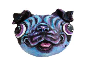 Karen Windness is a Denver pet portrait artist and illustrator who founded Mud Puppy Studios in 2003. Her mask, "The Blue Pug," is made of celluclay and acrylic paint. Pugs are her favorite animals to portray so it was only natural she creative the whimsical pug with bulging eyes and wrinkles. She created her mask in memory of her grandmother, Mary Ardella Limb.