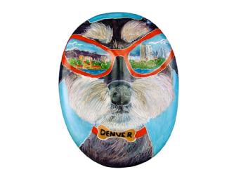 What is a more fitting way to promote Denver than to use a dog and the Denver skyline in a painting. That' what Denver artist Marlene Feinholz did when she was commissioned to do a mask for Richard Scharf, president and CEO of the Denver Metro Convention & Visitors Bureau. Marlene has received numerous awards for her works that are in private collections across the country. Her painting of the historic Broadmoor Hotel hangs in the CEO' office. "Painting my personal interpretation of scenes depicting recognizable buildings while maintaining an air of isolation and mystery is the fuel that urges me on to do another piece," says Marlene, whose works can be viewed at www.DenverArtists.com.