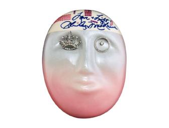Actress Shirley MacLlaine signed her mask and sent it from New Mexico to be painted by Denver artist David Michael who calls it "Mystic" - her personality. David was raised in an art and musical family and has painted abstracts and done metal sculpture for most of his adult life. He is known in Pennsylvania for his unique airbrush work on cars, motorcycles and walls. David restarted his art career after the untimely death of his only child, Michael, in 2004.