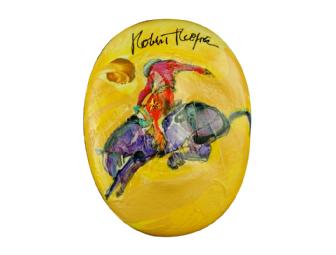 Actor and filmmaker Robert Redford commissioned Denver artist Carrie Fell to create his mask which she has dedicated to the Electric Horseman, the lodestar of Sundance. Redford signed both the front and the back of the mask. A native of Denver, Carrie began her professional career as an artist in 1988. Carrie employs her own technique for using mixed media on canvas, board and even Masks to create a vision of a unique West. In 2007, the Booth Western Art Museum in Cartersville, Ga., exhibited Carrie's first solo museum show, and in 2005, the Booth -- the only western art museum in the South, acquired her painting "Crazy Mountain Saddle Slickers." Along with numerous gallery exhibitions, Carrie participates in various art invitationals and charity benefits, including The Mask Project.
