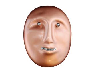 Denver artist David Michael Skolnik was raised in an art and music family and has painted abstracts and made metal sculptures most of his adult life. He was known in Pennsylvania for his unique airbrush work on custom cars, motorcycles and walls. He re-launched his art career after the death of his only child, Michael, in 2004. His mask, "Stark Silence," is the realization of no sound following Michael's death following surgery. "The silence was deafening."