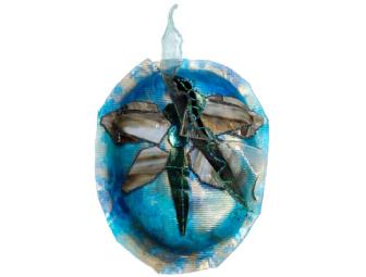 Voula Anadiotis grew up in Colorado earning a BFA in Visual Art with an emphasis on printmaking. She earned her master's degree in education from the Grand Canyon University and currently is an art teacher in the Cherry Creek School District. She calls her mask "Essence of the Winds," with her use of dragonflies representing many things in many cultures. In Japanese art, dragonflies represent new light and joy. Some Native Americans believe they are souls of the dead. In her mask, the dragonfly represents the power to adapt even in adversity.