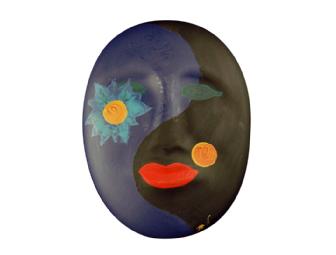 Colorado Rockies outfielder Cory Sullivan and his wife, Bresee Sullivan, who created this mask, met as undergrads at the University of Arizona and moved to Denver when Cory joined the Rockies in 2005. Bresee attends law school at the University of Denver. Bresee incorporates the lotus flower in their mask - a symbol consistent in many beliefs that stands for prosperity, goodness and purity. The lotus is integrated into the Chinese symbol for yin and yang which is a symbol of how life works. The mask represents integrating prosperity, goodness and generosity into the daily balance of our lives.