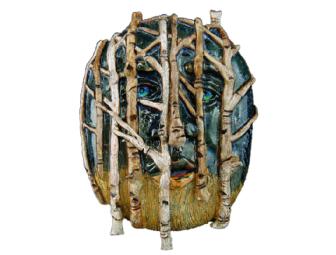 Kelly Smith received her fine arts degree from the University of Wisconsin, and a masters in education from Lesley University. She currently is a ceramics teacher at Cherokee Trail High School in Aurora. Her time is divided between painting and ceramics. Her mother, Helen, spent her final days in the care of The Denver Hospice. "This mask takes me to beautiful aspen-covered acreage near Steamboat Springs left to us by mom.... I am reminded of her love," Kelly says.