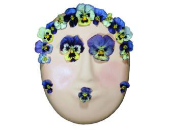 Deborah Kruse titled her mask, "Evie," after her mother who died under the care of The Denver Hospice. It features freshly picked and dried purple pansies, her mother's favorite flower and color.
