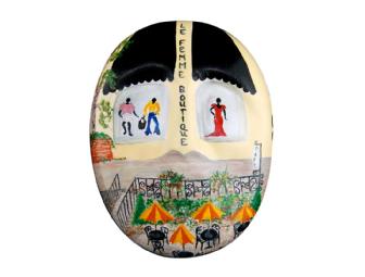 Karen Frasco, who currently works in retail at Chico's in Cherry Creek North, has always enjoyed painting and travel and taking painting and drawing classes in Denver. Her whimsical mask represents both her career as a bridal consultant at Bea's Bridal Nook, Priscilla of Boston and Chico's.