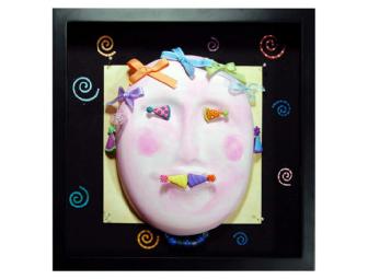 Everyone knows a "Party Girl" when they see one! That's what DPS art teacher Sharon Reno says. Reno says her "Party Girl" might look a tad demure, but her blushing gal with colorful bows and party hats is ready for the festivities! Reno studied Art Education at the University of Wisconsin and later received her M.A. from Lesley College in Boston.