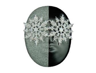 Rodriguez, born and raised in Colorado, is an artist whose skills are all self-taught. In the past, he has designed greeting cards for Mary Wilson, former member of The Supremes, Regis College of Denver, and others. His mask is a representation of simple lines and textures, with a splash of added sparkle for accent.