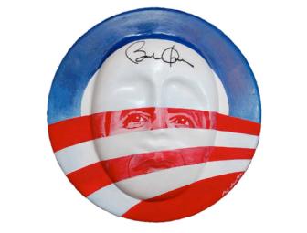 Senator Barack Obama penetrated the national political scene with a flurry when, as keynote speaker at the 2004 Democratic National Convention, he gave a resounding speech on the power of the United States of America. He said, "We are one people, all of us pledging allegiance to the Stars and Stripes, all of us defending the United States of America." Senator Obama's father was from Kenya and his mother grew up in Kansas. His mother and grandparents raised Obama mostly in Hawaii. He graduated from Columbia University with a degree in political science and went on to Harvard Law school, where he became the first African American editor of the Harvard Law Review. In Chicago, he was a community organizer, civil rights attorney and a popular lecturer on constitutional law at the University of Chicago. He served as a state senator before being elected to the US Senate in 2005. He has authored three books. The Barack Obama mask portrays his campaign's logo, and his signature.