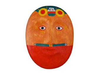 Jose Aguayo served with the 82nd Airborne before graduating from the Colorado Institute and launching a 26-year career in advertising and marketing for corporations and cultural organizations and becoming director of design for the Colorado Historical Society. Jose led the founding the of the Museo de las Americas and became known for his watercolor Southwestern landscapes. His mask is an interpretation of the Pre-Colombian Mexico sun god Tonatiuh - the symbol of life and hope.