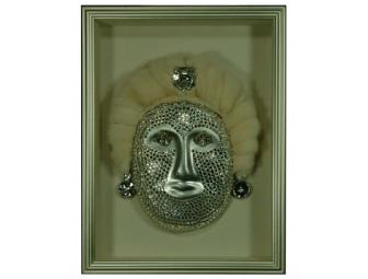 Dan Sharp, Luxury Outerwear in Cherry Creek, drew his inspiration for his mask from a 1950's brooch. His mask titled, "Bling'" features several 1950s brooches and crystals in design and is framed in pearl white mink. Special thanks to Janetta Lobato and Lyle Horn.