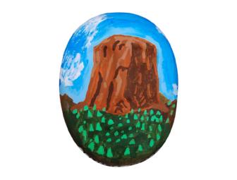 Julie and Steve Brown of Golden, Colorado, crafted this mask when inspired by the Devil's Thumb rock formation in Wyoming. This is their second Mask project, and both enjoy creating art that will help so many people through The Denver Hopsice programs.