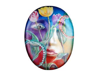 Brad Sharp considers himself to be multifaceted as an artist and designer with an idealistic nature. His roots are forged as a business operator, educator and project manager, yet he has evolved to support advocacy issues. As a painter, he works in a variety of mediums, however, he prefers watercolors. Brad’s mask "Final Gifts" symbolizes the radiant faces of those who have died. Springing forth is a perennial beauty of hope. Carried with life's blossoms are the many precious gifts that encircle each unique individual - be it family, friends, colleagues, and their dedicated care providers. His mask is a tribute to his mother, Elizabeth, who died under hospice care.